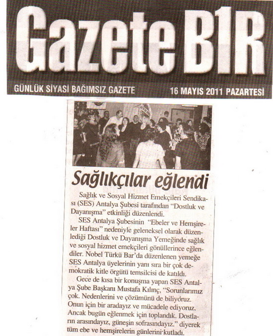 14 Mayıs 2011 tarihinde düzenlemiş olduğumu Dostluk ve Dayanışma Yemeğinin basına yansıyanlarının bir bölümü
