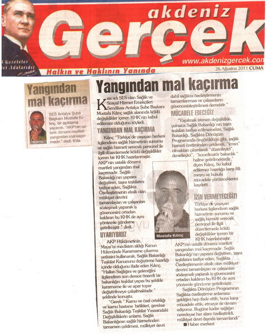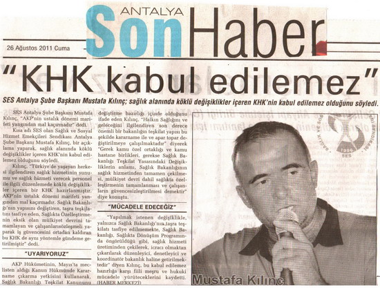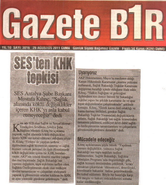 Sağlık alanında köklü değişiklikler içeren KHK hakkında Şube Başkanımız Mustafa Kılınç’ın yaptığı açıklamanın basına yansıyanlarının