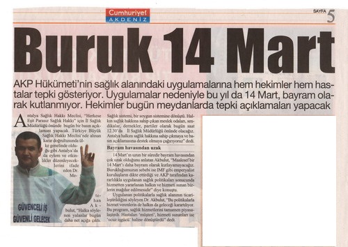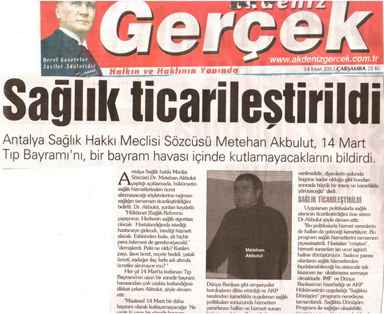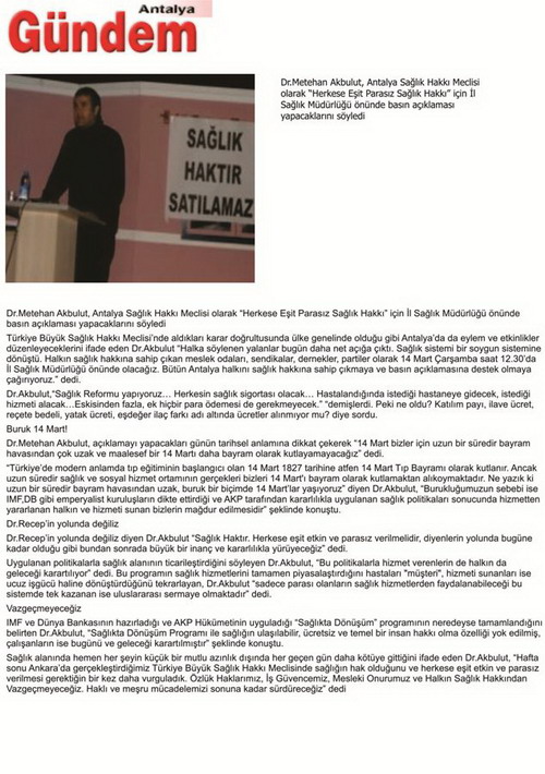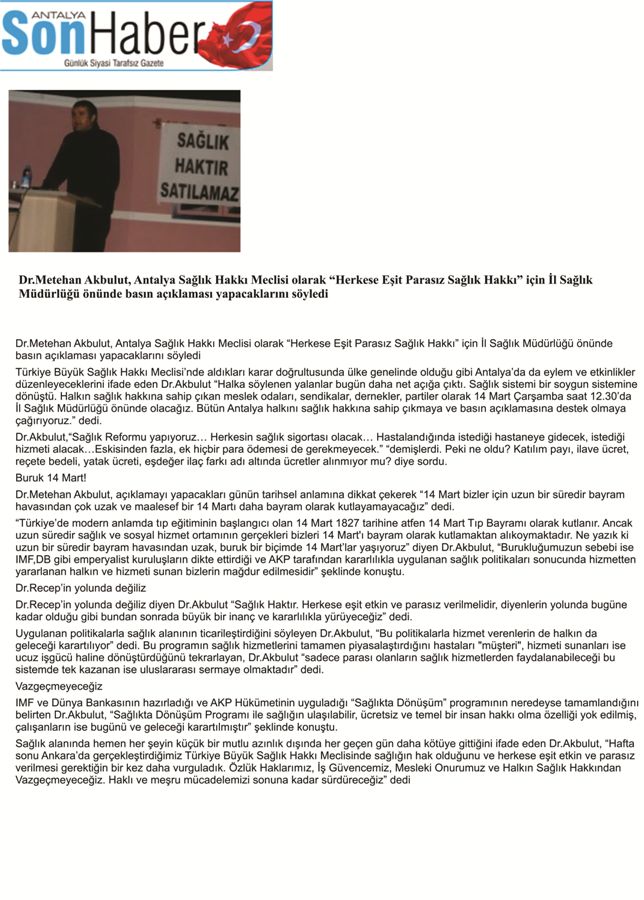 Yönetim Kurulu üyemiz Dr.Metehan Akbulut, “Herkese Eşit Parasız Sağlık Hakkı” için