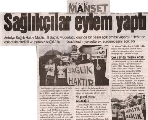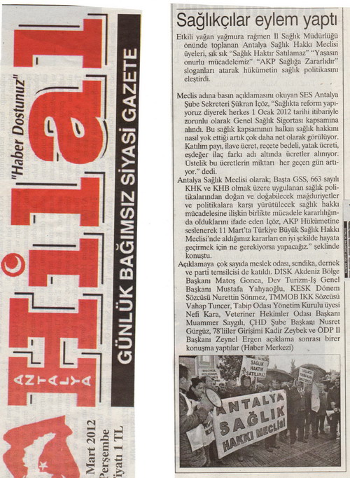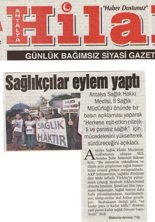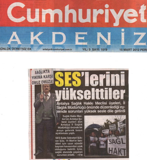 Şube Sekreterimiz Şükran İçöz’ün Antalya Sağlık Hakkı Meclisi adına İl Sağlık Müdürlüğü önünde yaptığı açıklama