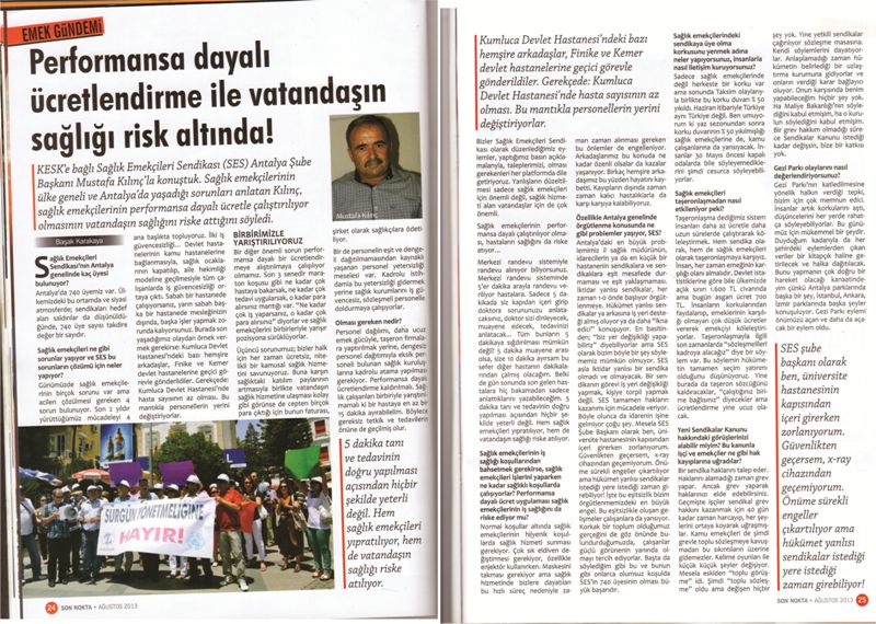 SES Antalya Şube Başkanı Mustafa Kılınç ile yapılan röportaj SonNokta Dergisi'nde yayınlandı.