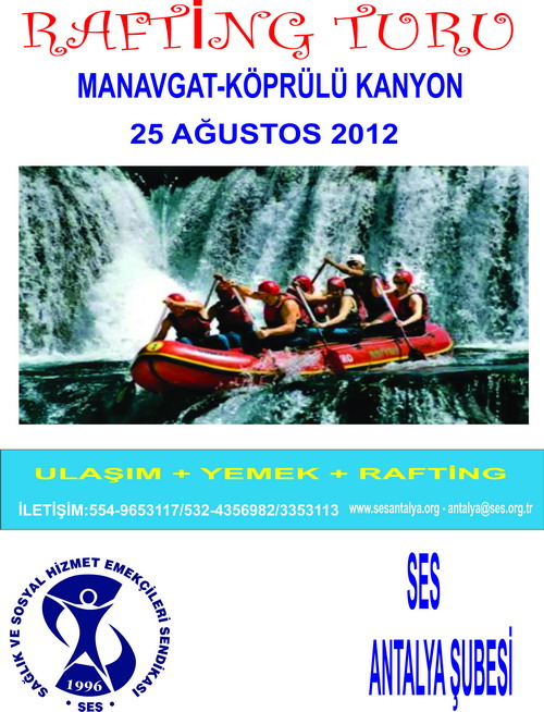 Şubemiz tarafından 25 Ağustos 2012 Cumartesi günü Köprülü Kanyon/Manavgat’a Rafting Turu düzenlenecektir.