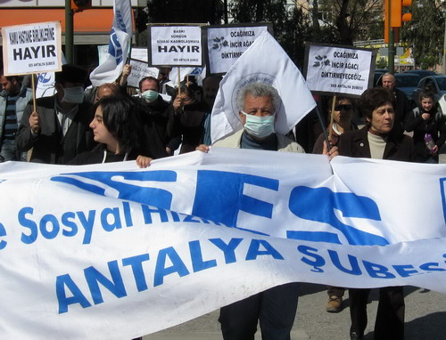 Güllük-TRT Kavşağında bulunan sendika binalarından Yavuz Özcan Parkına kadar ağızlarını maskelerle kapatarak yürüyen ve yol boyunca “Parasız Eğitim Parasız Sağlık” ”AKP Sağlığa Zararlıdır”, “Sağlık Haktır Satılamaz” “İşte Sendika İşte SES” sloganları atan sağlıkçıların etkinliği halktan büyük destek gördü.