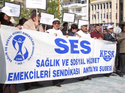 SES Antalya Şubesi tarafından eylem gerçekleştirildi. Şarampol kapalı yolda gerçekleştirilen eyleme 75 Sağlık ve Sosyal Hizmet çalışanı katıldı. Alkış ve sloganlarla başlayan eylemde basın açıklaması Şube Başkanı Mustafa Kılınç tarafından yapıldı