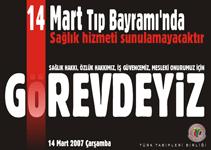 Bugün geldiğimiz noktada sağlık hizmetleri toplumsal amacından, kamu hizmeti niteliğinden uzaklaştırılarak piyasanın kar hırsına terk edilmektedir. Sağlıkta eşitsizlikler alabildiğine artmaktadır. Hekimler, hemşireler, ebeler, bütün sağlık çalışanları için 14 Mart bir bayram günü değil, sorunların tartışılacağı ve kamuoyuna duyuracağı bir sağlık haftası olarak değerlendirilmektedir. Eylül 2006 tarihinden beri yürüttüğümüz Sağlıkta Yıkımı Durduralım mücadele programımız birçok kesimin katkısı ve katılımı ile önemli bir noktaya gelmiştir. 11 Mart 2007 tarihinde Ankara’da gerçekleştirdiğimiz Beyaz Miting eczacısından, diş hekimine, tıp öğrencisinden, sağlık hizmeti talep edene kadar birçok kesimin katılımı ile son derece renkli, coşkulu bir biçimde geçmiştir.