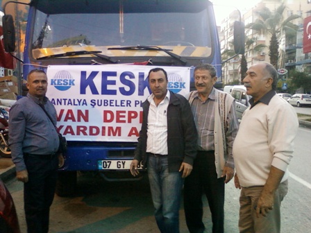 29.10.2011 tarihinde gönderildi. KESK üyelerinin yoğun olarak katıldığı bu kampanyada ikinci kamyonu önümüzdeki günlerde, Manavgat, Alanya ve diğer ilçelerden toplanan yardımlar ise 31 Ekim 2011 tarihinde gönderilecek.