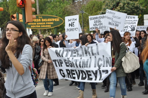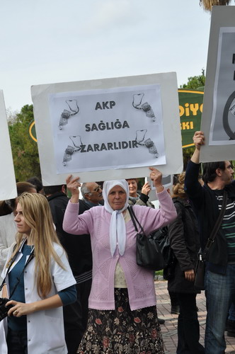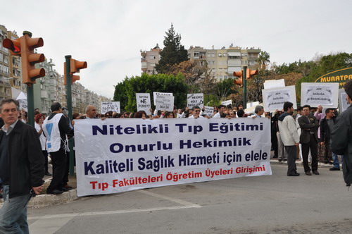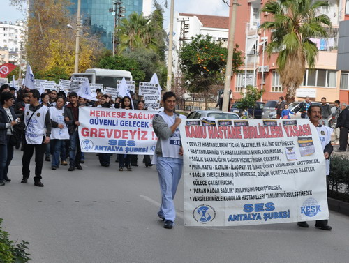 Akdeniz Üniversitesi Tıp Fakültesi Hastanesi’nde yüzde yüz katılımla iş bırakan Sağlık ve Sosyal Hizmet Emekçileri Sendikası, Devrimci Sağlık İşçileri Sendikası üyeleri ile Akdeniz Üniversitesi Öğretim Üyeleri Girişimi, Asistan Hekimler, ve Tıp Öğrencileri sloganlar, şarkılar, türküler eşliğinde bir süre eylemlerini sürdürdükten sonra hastaneden ayrılarak toplanma alanına gittiler.