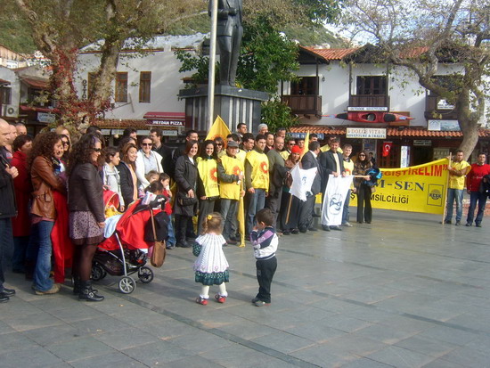 Eğitim Sen Temsilciliğinde bir araya gelen KESK üyeleri; buradan Cumhuriyet meydanına yürüdüler. Meydanda düzenlenen basın açıklamasını alkışlar ve sloganlarla destekleyen emekçilerin etkinliği halaylar ile sona erdi.