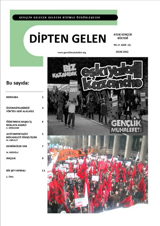 aylık gençlik bülteni Dipten Gelen'de “Antiemperyalist mücadeleyi yükseltmeliyiz.” başlıklı bir yazısı yayınlandı. 21 Aralık 2011 grevi başta olmak üzere sağlık ve sosyal hizmet emekçilerinin mücadelesine ilişkin değerlendirme yazısının tamamı