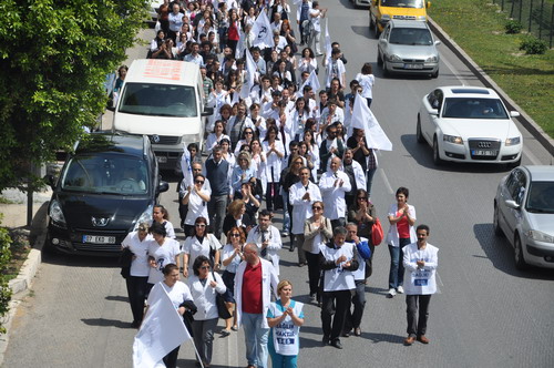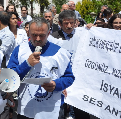 “Sağlıkta Dönüşüm” programı uygulandıkça sağlık emekçilerine yönelik şiddet artmaktadır. Sağlıkta uygulanan politikaların sonucu halk ve sağlık emekçileri karşı karşıya gelmektedir. Hekime, sağlık emekçilerine yönelik şiddet, bu sağlık politikasının ve onun uygulayıcılarının eseridir. Halkın ve sağlık emekçilerinin yararına olmayan bu sağlık politikalarından derhal vazgeçilmelidir “
