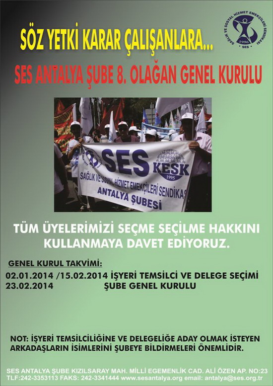 SES Antalya Şubemizin 8. Olağan Genel Kurul Takvimi belli olmuştur. Bu takvime göre