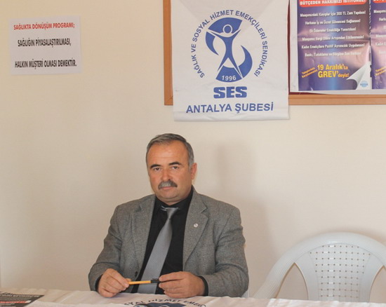 Sağlık ve Sosyal Hizmet Emekçileri Sendikası Antalya Şube Başkanı Mustafa Kılınç bir basın toplantısı düzenledi.