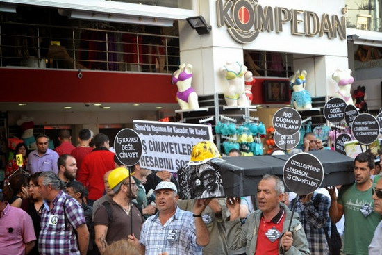 Cumhuriyet Meydanında öncelikle Soma'da hayatını kaybeden emekçiler için saygı duruşu yapıldı. Saygı duruşunun ardından kurumlar adına konuşan DİSK Akdeniz Bölge Başkanı Cemal Aybar "bu katliamının faili özelleştirme ve taşeronlaştırma politikalarını hayata geçirenlerdir. Yıllarca kamu eliyle üretimin yapıldığı maden sahaları özel sektöre devredildikten sonra iş kazalarında patlama yaşanmıştır. 2002 yılından 2014 yılına kadar işçi cinayetlerinin yüzde 40 artış göstermesinin nedeni özelleştirme ve taşeronlaştırma politikaları sonucu TTK bünyesinde çalışanların sayısının üçte bir oranında azaltılmasıdır" dedi. Açıklamanın ardından 15 Mayıs Perşembe günü KESK-DİSK-TMMOB ve TTB'nin gerçekleştireceği bir günlük grev için çağrı yapıldı.