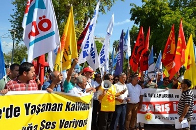 KESK Antalya Şubeler Platformunun çağrısıyla toplanan yüzlerce kişi IŞİD çetelerinin Kobane saldırılarını ve son iki gündür IŞİD protestolarında yaşanan polis şiddetini protesto etti.