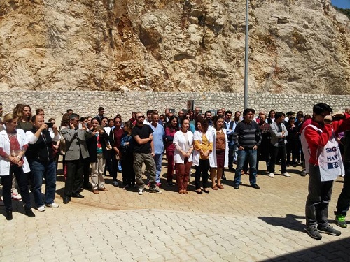 Bugün burada yakalarımıza arkadaşlarımızın fotoğraflarını yapıştırıp bir cenaze merasimi için toplanmadıysak mutlu olmalıyız. Geceyi Sağlık Şehidi vermeden tamamladığımız için kendimizi şanslı kılmalıyız.Tam da Gaziantep’te öldürülen Doktor Ersin ASLAN'ın ölüm yıldönümüne bir gün kala Kaş Devlet Hastanesinde görevi başında Doktor Mehmet GÖRGEÇ , Sağlık Memuru Hüseyin AKTAŞ ve Hemşire Derya Aktaş hasta yakınları tarafından darp edilmişlerdir .Sözlü tacize uğratılmışlardır. Bu olay sağlıkta şiddetin ülkenin her yerine sinen olağan bir durum olmaya başladığının en basit örneğidir. Tüm sağlık çalışanları adına bugün Sağlık Sen, Türk Sağlık Sen, Sağlık ve Sosyal Hizmet Emekçileri Sendikası ve Ufuk Sağlık Sen olarak tek yürek olup, Kaş Devlet Hastanesinde yapılan bu şiddeti protesto ediyoruz. Sağlık sektöründe çalışan tüm sağlık çalışanları, 'Hangi hasta yakını tarafından darp edileceğim?' korkusu ile hasta tedavi etmeye çalışıyor. Bu sağlıksız psikoloji ile ne kadar sağlıklı bir sağlık hizmeti sunabilir? Çözüm geciktikçe şiddet artıyor. Hastanelerde bulunan kameralar sadece medyada şiddetin seyrini sağlıyor. Caydırıcı önlemler alınamıyor. Sağlıkta şiddet sadece basit bir darp olayı olmaktan çıkarılarak, kamu hizmetini engellemek , vatandaşın sağlık hakkını gasp etmek ve bunun sonucu olarak da; insan hayatının riske atılması gibi suçların, cezası olması gerekir. Tutuklu yargılamalar, yüksek para cezaları gibi cezalar verilmelidir.