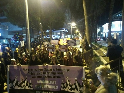 Antalya Kadın Platformu polisin tüm engelleme çabalarına rağmen 8 Mart gece yürüyüşünü gerçekleştirdi.
