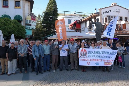 Eşitlikçi, özgürlükçü, demokratik, kamucu, laik, bağımsız bir cumhuriyet ve ülke için; gericiliğe, faşizme, emperyalizme, özelleştirmeci, piyasacı yağma düzenine, doğanın tahribine, kentlerin yağmalanmasına, denizlerin, derelerin kirletilmesine, ticarileştirilmesine, cinsiyet ayrımına, kadın cinayetlerine, çocuk istismarına, karşı,Türkiye’nin Tüm illerinde olduğu gibi Antalya’da da alanlardayız. 1 Mayıs Pazar günü saat 13.00’de Aydın Kanza Parkında toplanarak Cumhuriyet Meydanına yürüyeceğiz ve birlik ve beraberlik içinde mitingimizi gerçekleştireceğiz. Tüm Antalyalıları 1 Mayıs coşkusuna katılmaya çağırıyoruz.