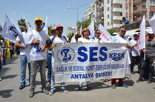 1 Mayıs Antalya’da coşkuyla kutlandı. DİSK-KESK ve TMMOB’un çağrısıyla onbinlerce kişi 1 Mayıs için