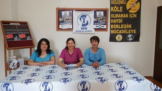 Bizler alın teriyle çalışan, onurumuzla mesleğimizi yapmak isteyen emekçiler olarak; bizden önceki mücadele mirasına sahip çıkarak; iş ve iş yeri güvencemize, sağlık hakkımıza, gelecek güvencemize, meslek onurumuza ve mesleki bağımsızlığımıza sahip çıkmak ve çocuklarımıza onurlu bir dünya bırakmak için azim, cesaret ve inançla TAŞERON, SÖZLEŞMELİ, KADROLU, hep birlikte SES’te mücadeleyi yükselterek devam etmeliyiz.