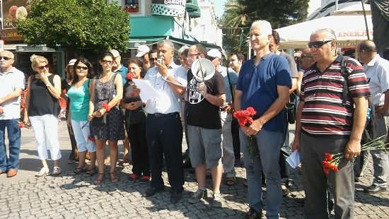 Antalya Emek ve Demokrasi Güçleri Attalos Heykeli önünde yaptıkları basın açıklamasıyla 10 Ekim katliamında