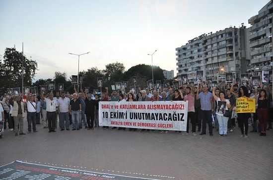 Geçen yıl 10 Ekim’de Emek, Barış ve Demokrasi mitingiyle ülkemizin içine sürüklendiği çatışmalı ortama dur demek, ülkemizdeki savaş iklimini ve ortamını dağıtmak, kendi var oluş ortamımızı korumak, emeğin haklarıyla barış ve demokrasi arasındaki dolaysız irtibatı kurmak için Ankara’daydık. Ülkenin dört bir yanından bayraklarımızla, pankartlarımızla, düşlerimizle ve şarkılarımızla gelmiştik Ankara’ya. Meydanlarına, geleceğine sahip çıkan, barışa ve kardeşliğe inanmış hayat dolu bir topluluktuk.
