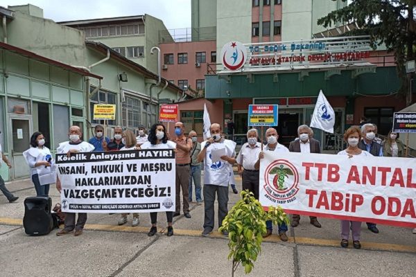 Sağlık ve Sosyal Hizmet Emekçileri Sendikası Antalya Şubesi ve Antalya Tabip Odası Tarafından protesto edildi.