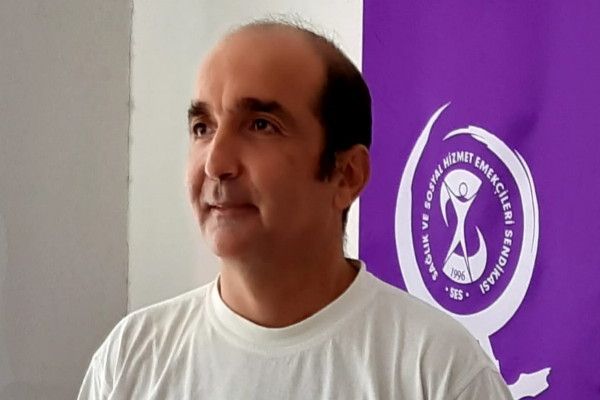 Sağlık ve Sosyal Hizmet Emekçileri Sendikası Antalya Şube Eş Başkanı Kaan Taşer şube binasında