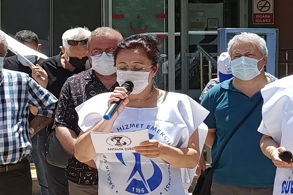 Sağlık ve Sosyal Hizmet Emekçileri Sendikası (SES) Antalya Şubesi üyeleri Sağlık Bakanlığı tarafından yayınlanan
