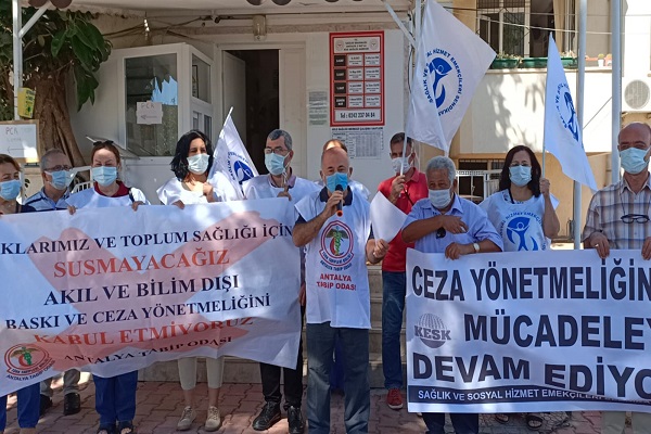 Sağlık ve Sosyal Hizmet Emekçileri Sendikası Antalya Şubesi ve Antalya Tabip Odası ceza yönetmeliği olarak nitelendirdikleri