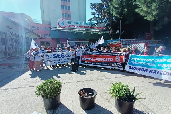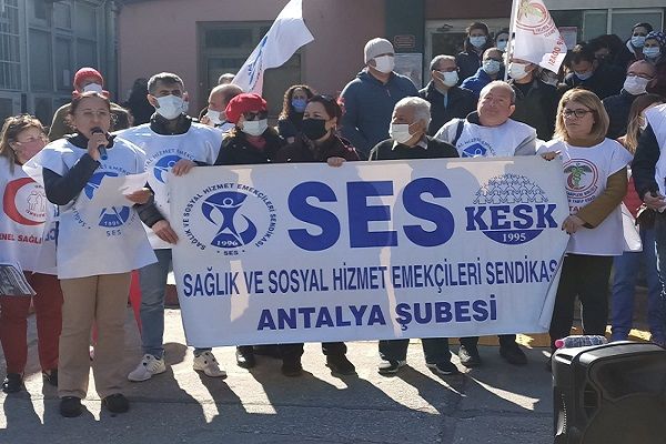 Sağlık emekçileri adına açıklama yapan Sağlık ve Sosyal Hizmet Emekçileri Sendikası (SES) Antalya Şubesi Eş Başkanı Şükran İçöz şunları söyledi;