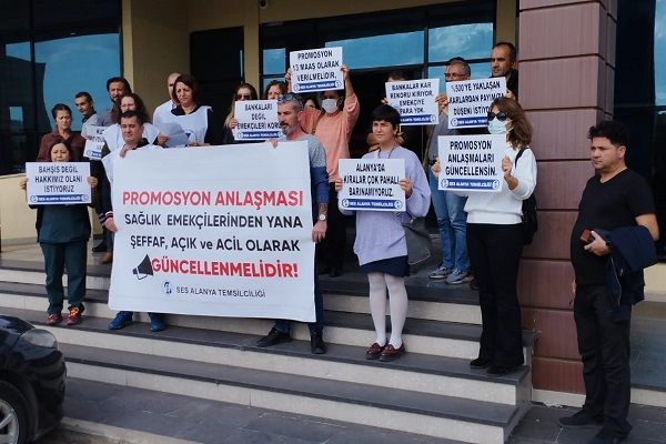 Sağlık ve Sosyal Hizmet Emekçileri Sendikası (SES) Alanya Temsilciliği banka promosyonlarının yenilenmesi talebiyle