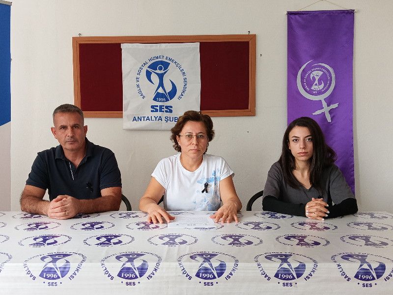 İsrail’in Gazze’de hastane bombalamasına yönelik tepkiler sürüyor. Sağlık ve Sosyal Hizmet Emekçileri Sendikası Antalya Şubesi bir açıklama yaparak saldırıyı kınadı. Şube binasında yapılan açıklamada konuşan SES Antalya Şube Eş Başkanı Şükran İçöz “Savaşın kazananı, barışın kaybedeni olmaz! Coğrafyamızda ve dünyada barış istiyoruz!” dedi. Şükran İçöz açıklamasının devamında şunları ifade etti;