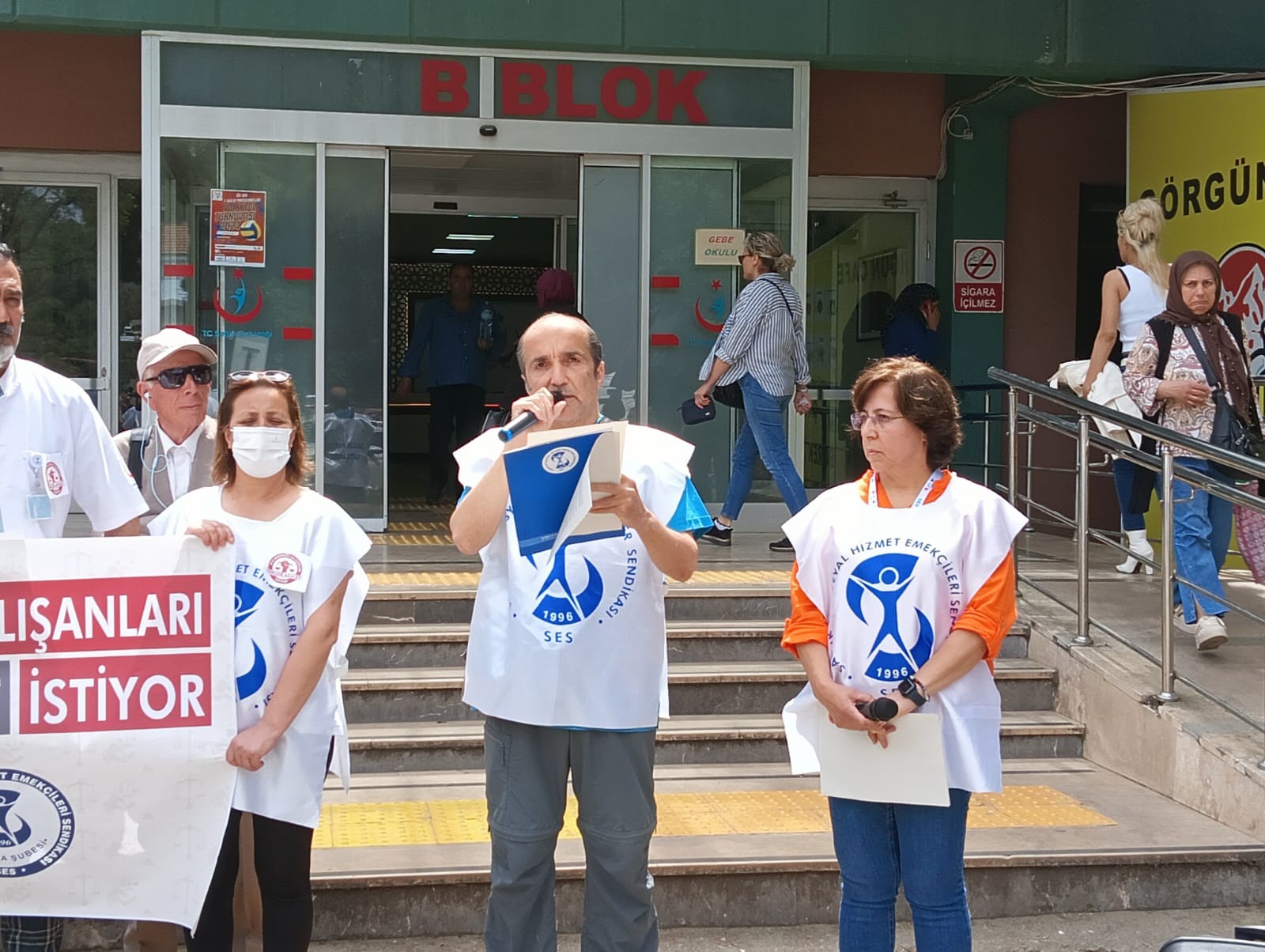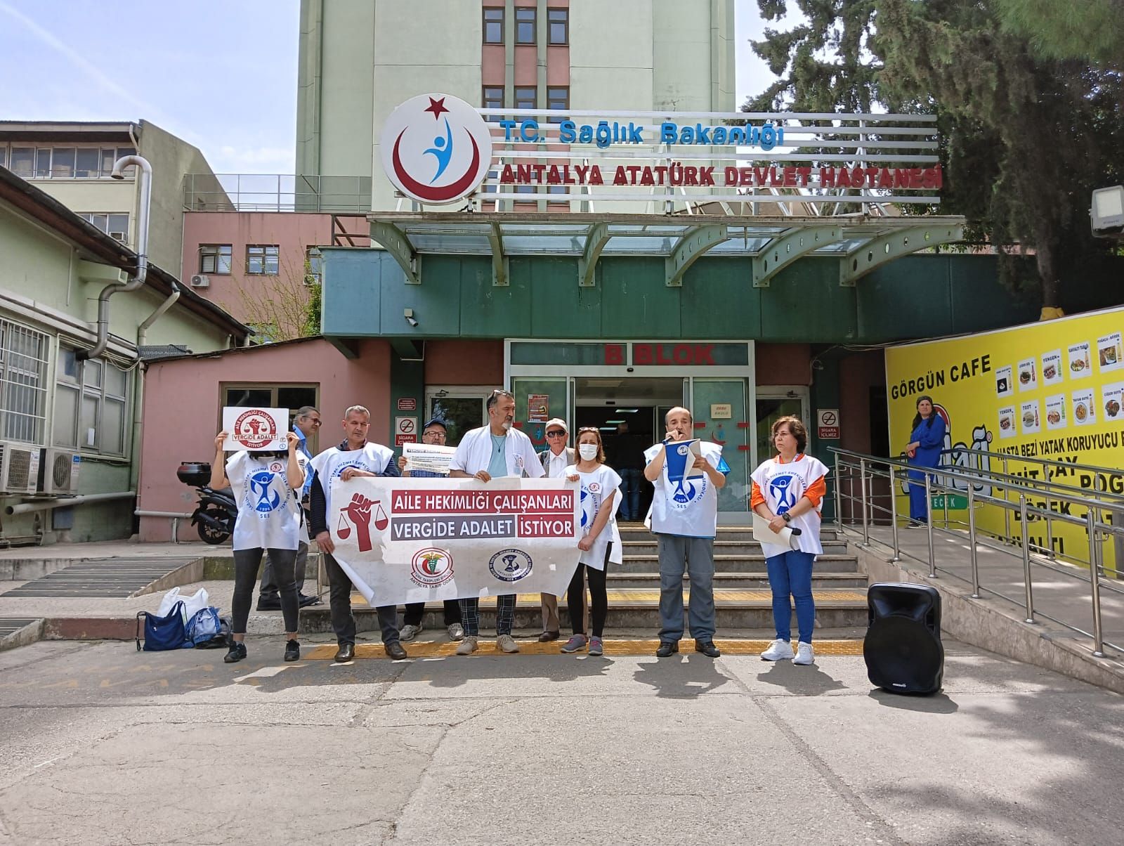 “ Vergide Adalet İstiyoruz” eylemimiz yedinci haftasında da devam etti. Aile Sağlığı Merkezlerinde başlatılan eylemler diğer sağlık kuruluşlarını da kapsayacak şekilde genişletildi. Bu haftaki eylem Antalya Atatürk Devlet Hastanesi önünde yapıldı. Eylem öncesi dün İstanbul Gayrettepe’de iş cinayetinde hayatını kaybeden emekçiler anıldı. Yapılan anmada “dün İstanbul Gayrettepe’de 16 katlı bir binanın eksi 1 ve eksi 2. katında faaliyet gösteren gece kulübünde tadilat yapıldığı sırada, sahnenin yanında patlama sonucu çıkan yangında hayatını kaybeden 29 işçimizin kederli ailelerine baş sağlığı diliyor acılarını paylaşıyoruz. Artık yeter! Denetimsiz şekilde, hiç bir işçi sağlığı ve iş güvenliği önleminin alınmadığı koşullarda yaşanan bu facia bir cinayettir. Bu cinayetten, patronlar kadar patronların kar hırsının önüne geçemeyen, denetlemekle yükümlü idare de sorumludur. Tüm sorumluluk bir kaç çalışana yüklenemez, patronlar dahil, denetlemekle yükümlü kişi ve kurumlar ortaya çıkarılmalı ve cezalandırılmalıdır” denildi. Anmanın ardından kurumlar adına ortak basın açıklamasını SES Antalya Şube Eş Başkanımız Dr. Kaan Taşer yaptı.