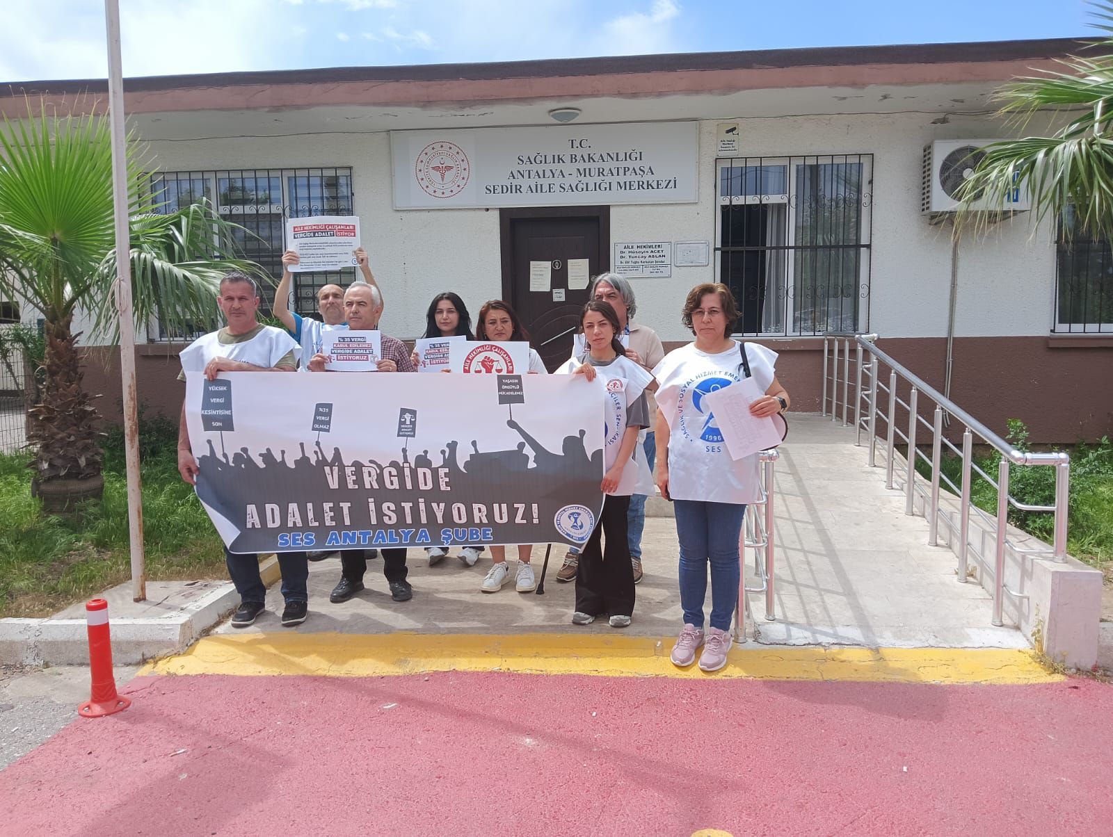 Şimdilik Aile Sağlığı Merkezlerinde sürdürdüğümüz esas olarak tüm çalışanların ücretlerinden kesilen yüksek vergilere karşı ortak mücadele hareketi başlamıştır. Bu talebimiz tüm çalışanlardan hatta gelir düzeyi düşük halkımızdan alınan adil olmayan ekonomik ve sosyal eşitsizliğe kaynaklık eden dolaylı vergilerin sınırlandırılması içinde olduğunu bildirmek isteriz.