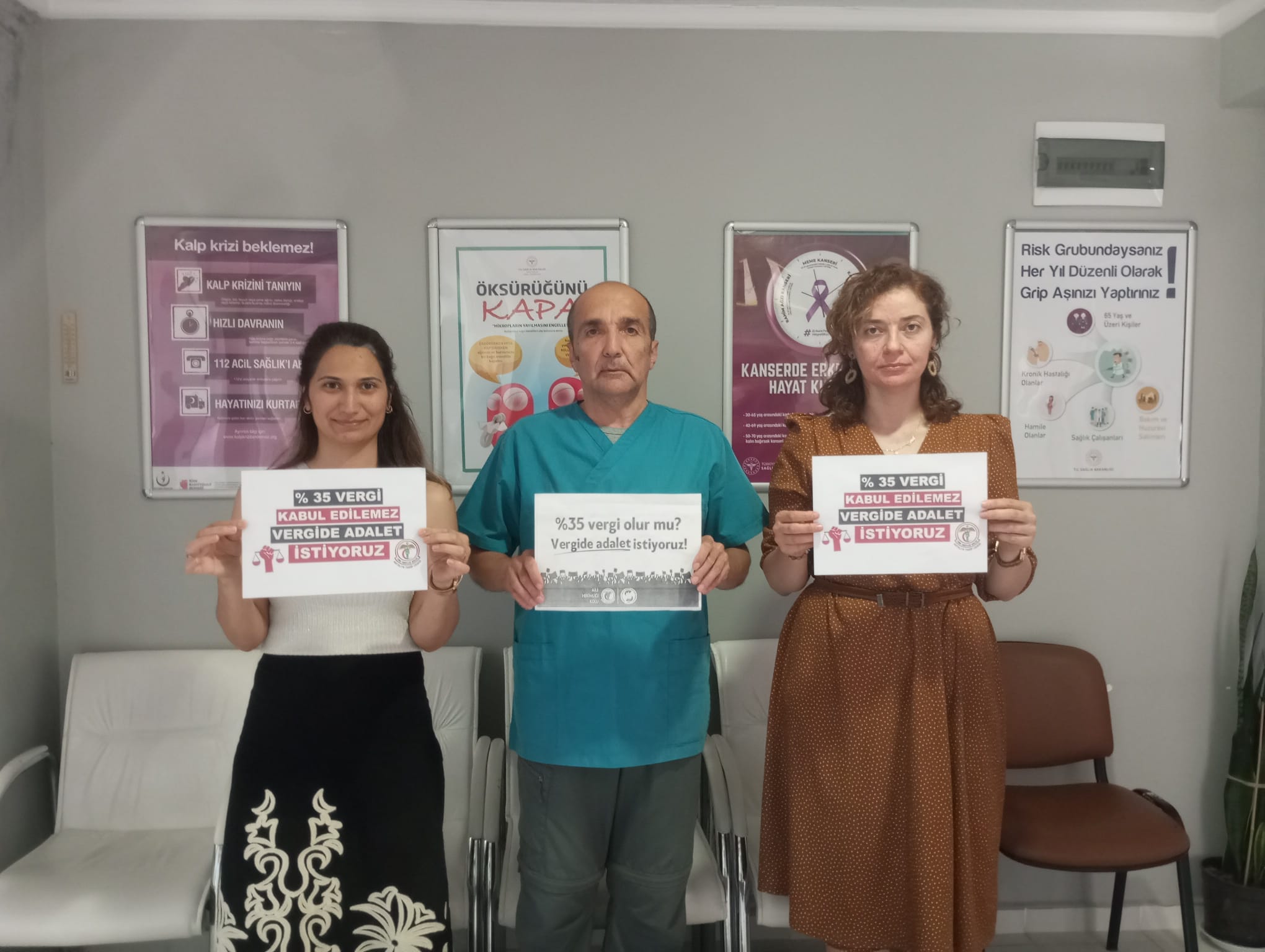 Sorularımızı yanıt alana ve vergide adalet sağlanana kadar sormaya devam edeceğiz. Halkın sağlık hakkı, sağlık çalışanlarının haklı mücadelesi ve vergi adaleti için yürüttüğümüz mücadele sonuç alınana dek sürecek. Bu mücadeleye katılımınız için tüm mağdur olan çalışanları ve halkımızı Çarşamba eylemlerimize davet ediyoruz dedi.