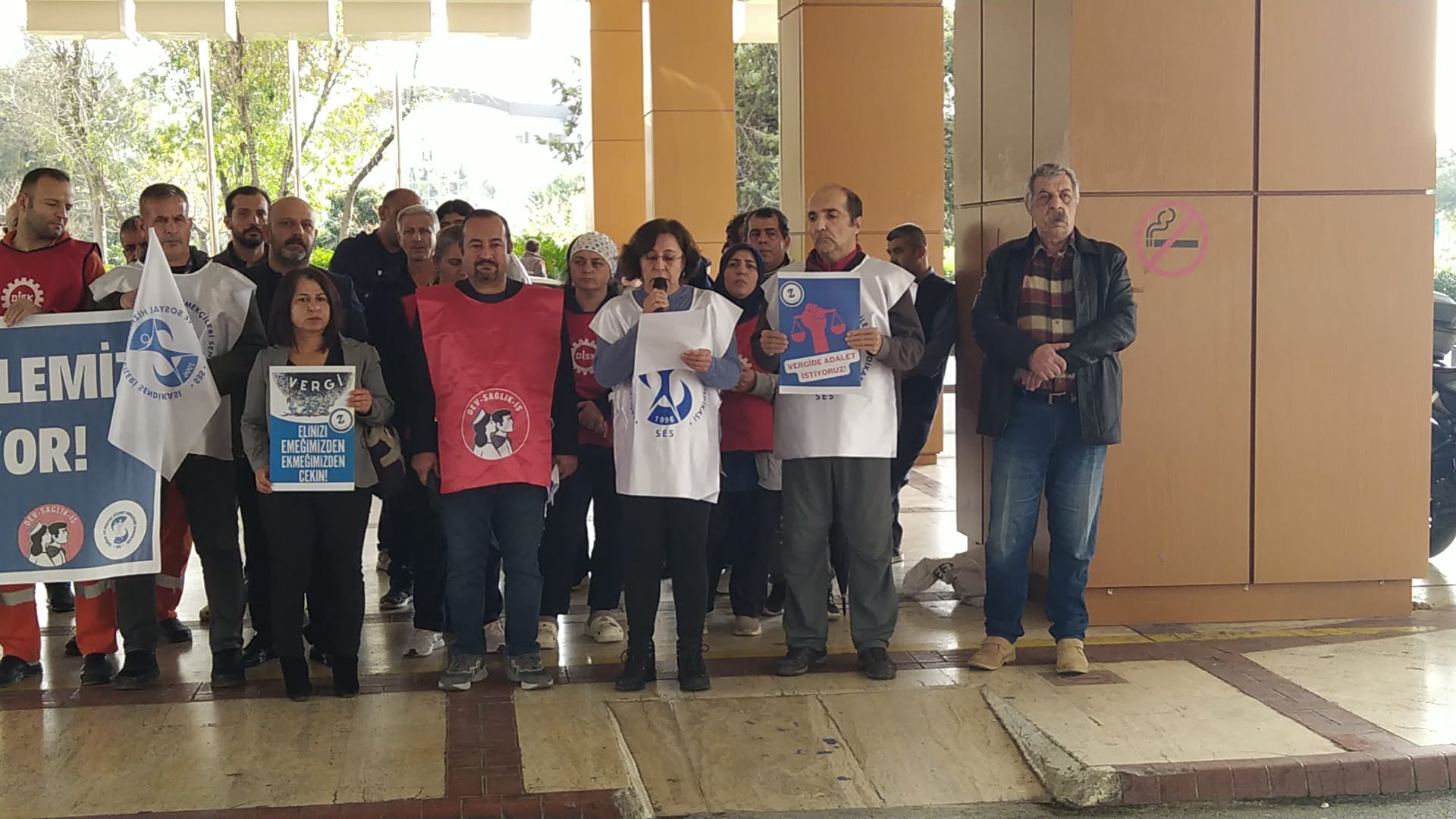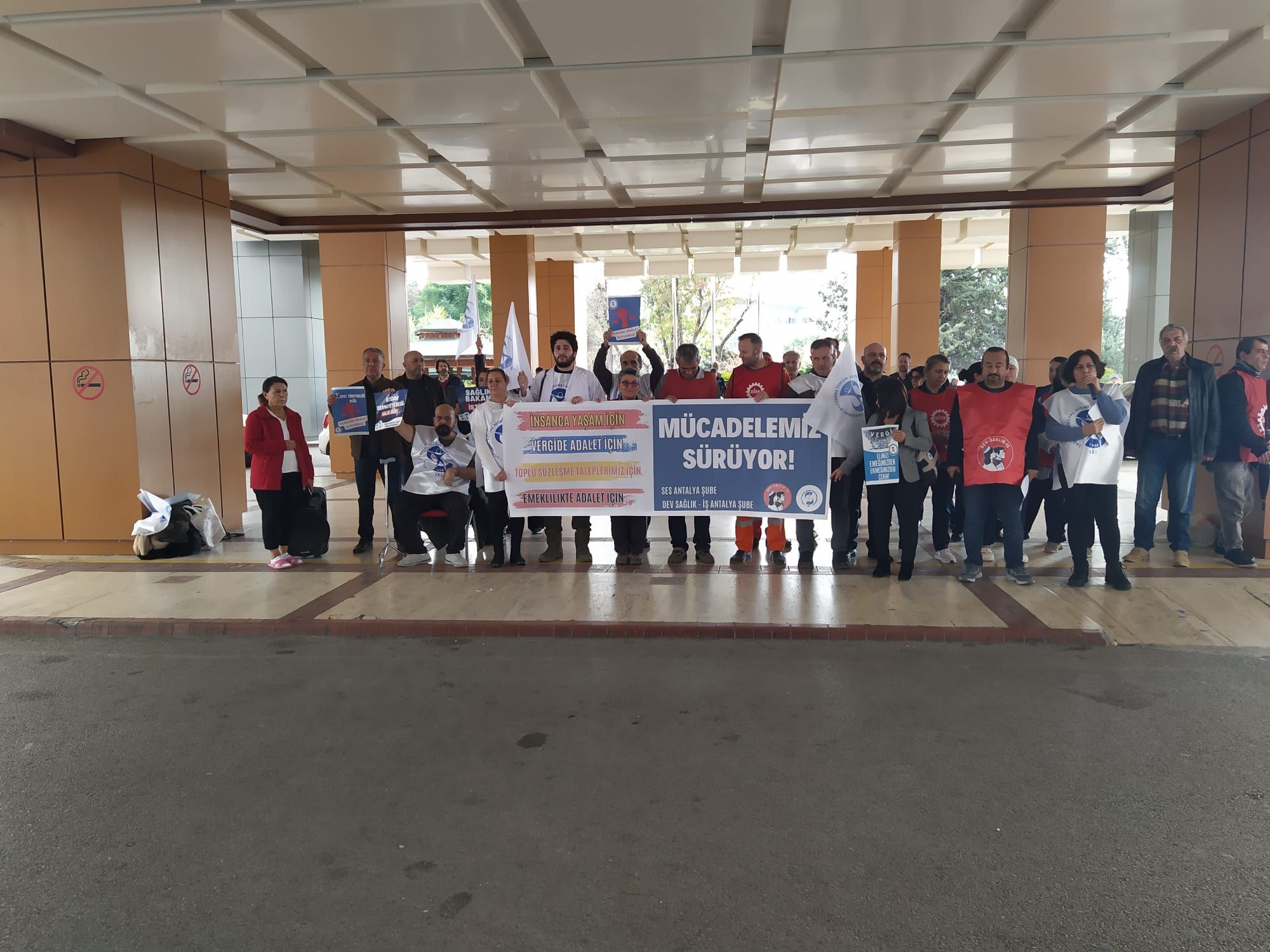 Sağlık ve Sosyal Hizmet Emekçilerinin Vergide Adalet eylemleri 40. Haftasına girdi. Sağlık ve Sosyal Hizmet Emekçileri Sendikası (SES) Antalya Şube ve Devrimci Sağlık İş Antalya Şubesi Akdeniz Üniversitesi Hastanesi A Blok önünde ortak eylem yaparak Vergide Adalet istediler ve mücadelede ısrarcı olduklarını ifade ettiler.