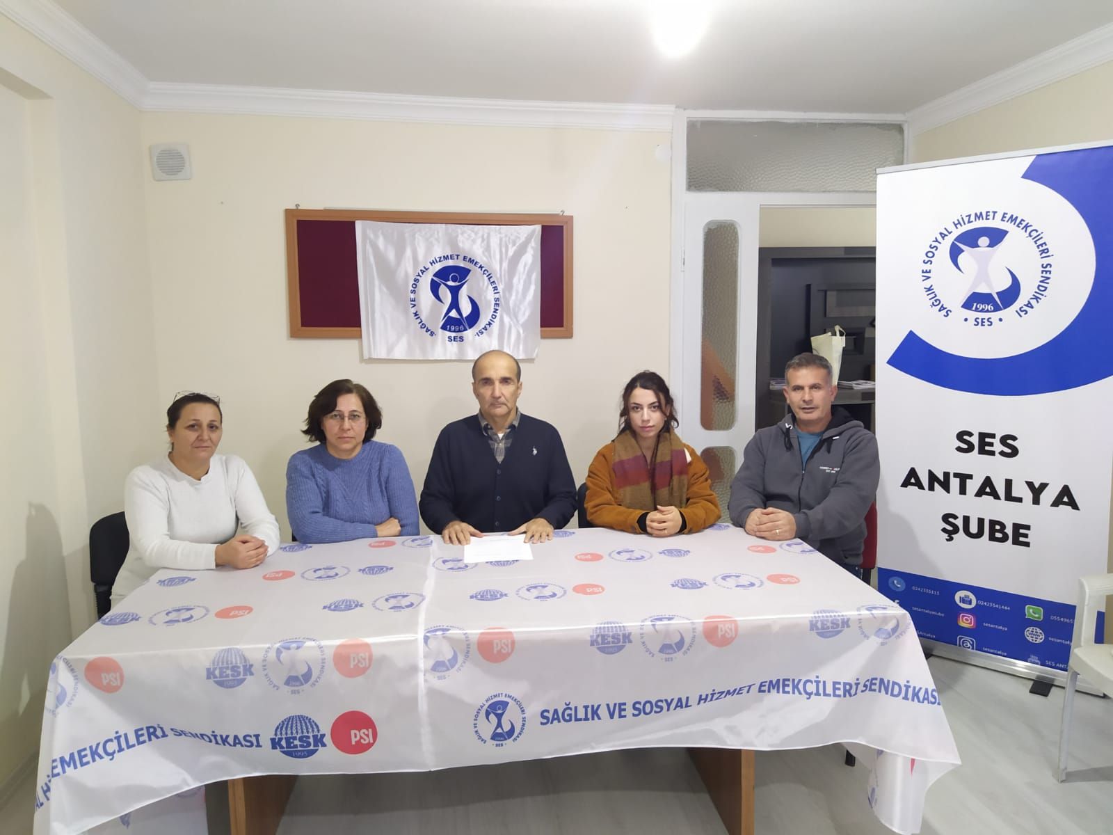 Sağlık ve Sosyal Hizmet Emekçileri Sendikası (SES) Antalya Şubesi Eş Başkanı Dr. Kaan Taşer şube binasında yaptığı basın açıklamasında AKP iktidarı tarafından açıklanan asgari ücret rakamına tepki gösterdi.