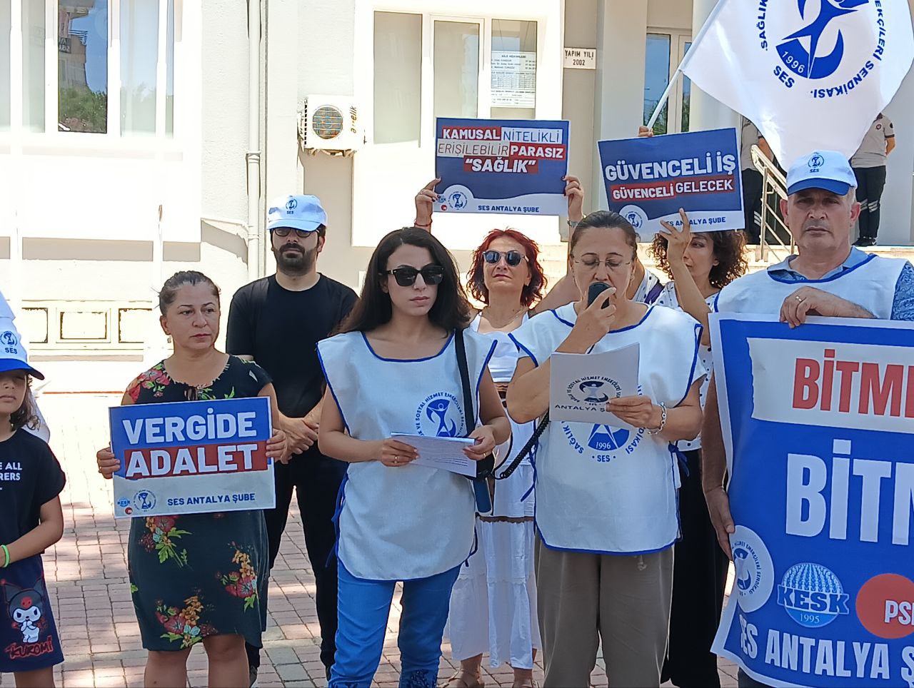 Aile Sağlığı Merkezlerinde (ASM) görev yapan sağlık emekçilerinin maaşlarında Mayıs ayından itibaren yapılan hukuksuz ve keyfi kesintileri protesto ettik. Antalya İl Sağlık Müdürlüğü önünde yaptığımız eylemde basın açıklamasını Şube Eş Başkanımız Şükran İçöz okudu.